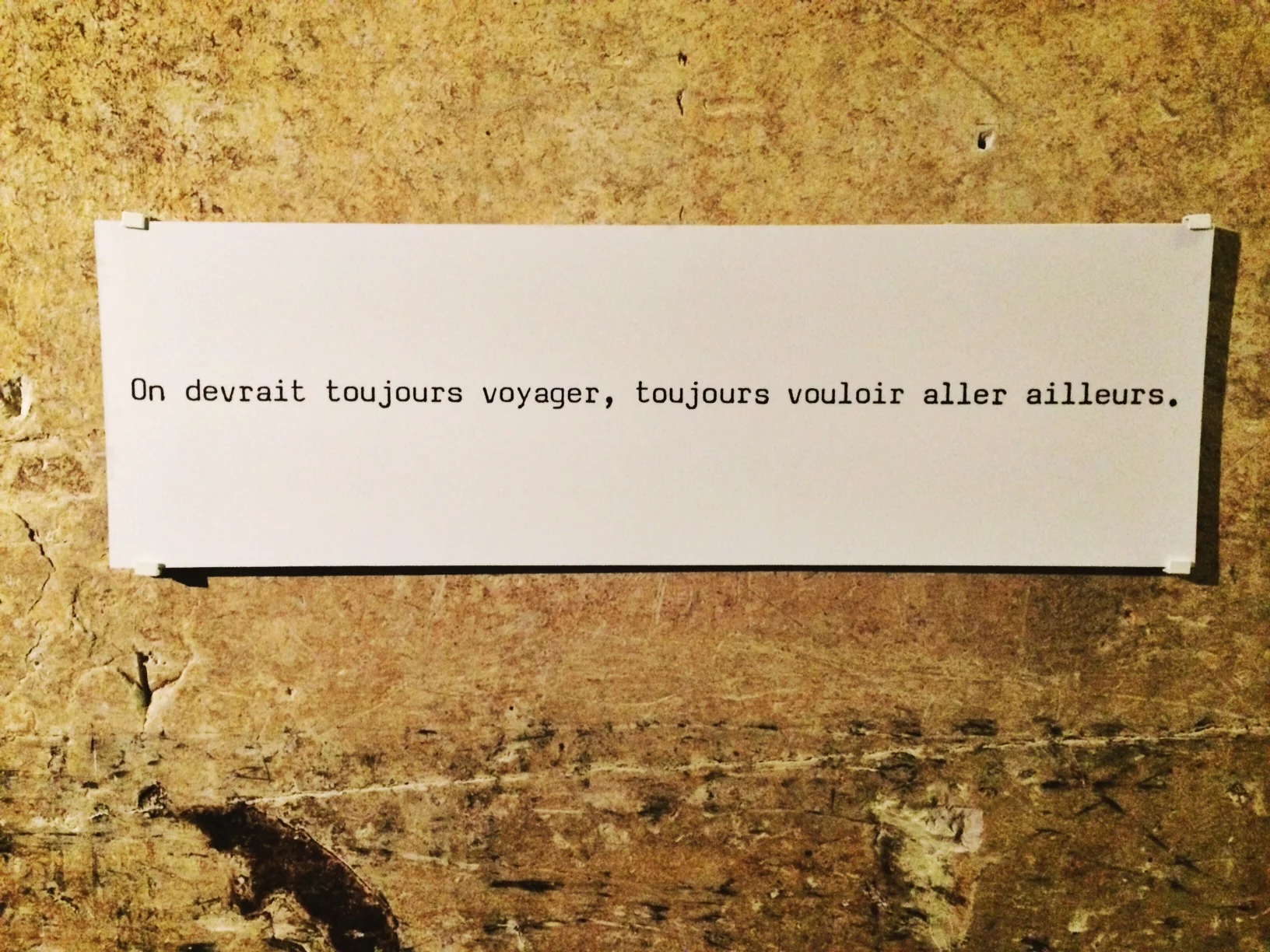 I love this quote displayed on the cellar wall. It means "We should always travel, always have the desire to go somewhere else."