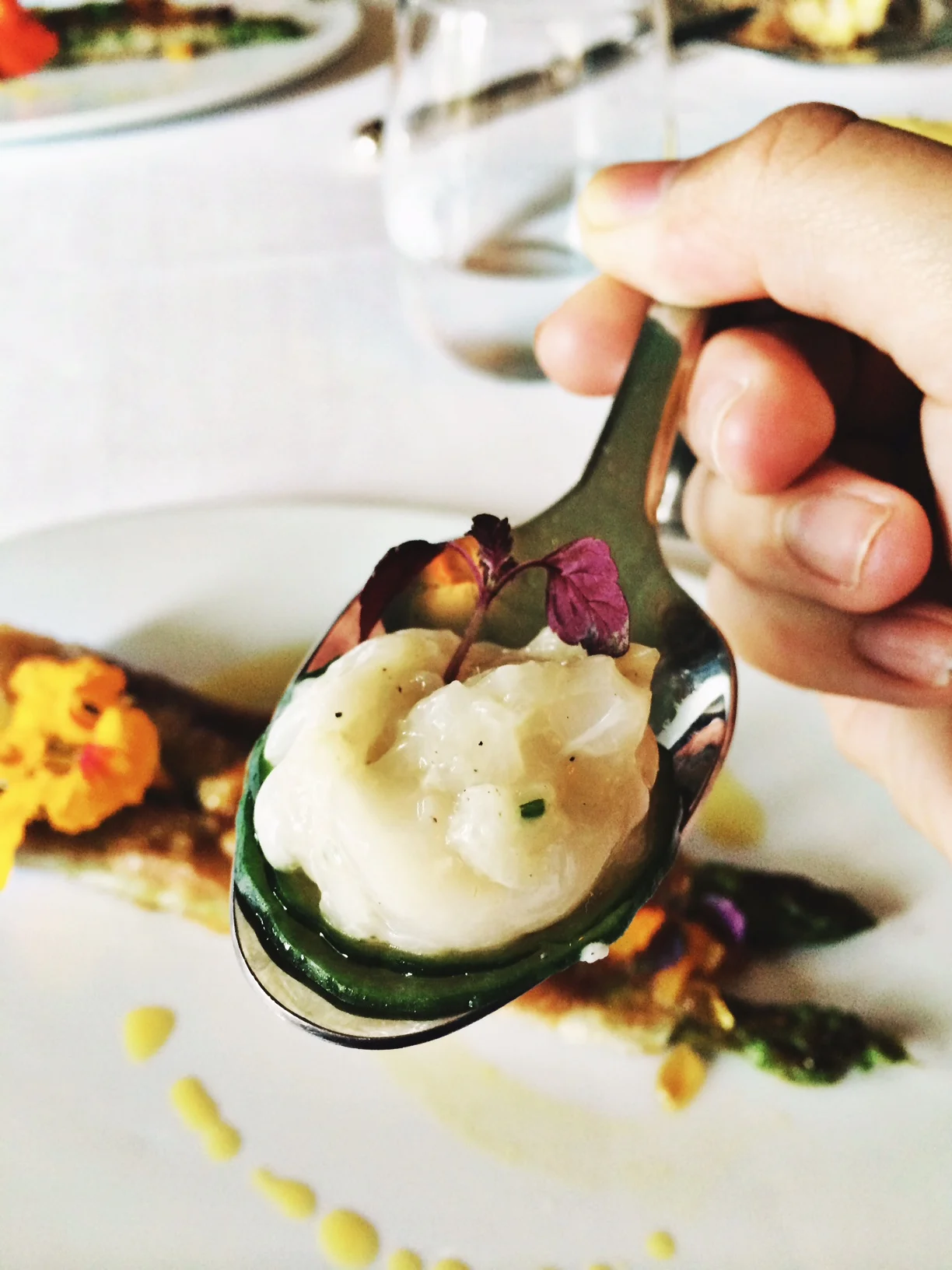They also gave us this concoction of cucumber and I honestly forgot what else was there. Anyways, the crispy asparagus is the one being all blurry in the background, can you see? No? Hmm, sorry I guess I'm trying too hard to be a little more artistic there haha..